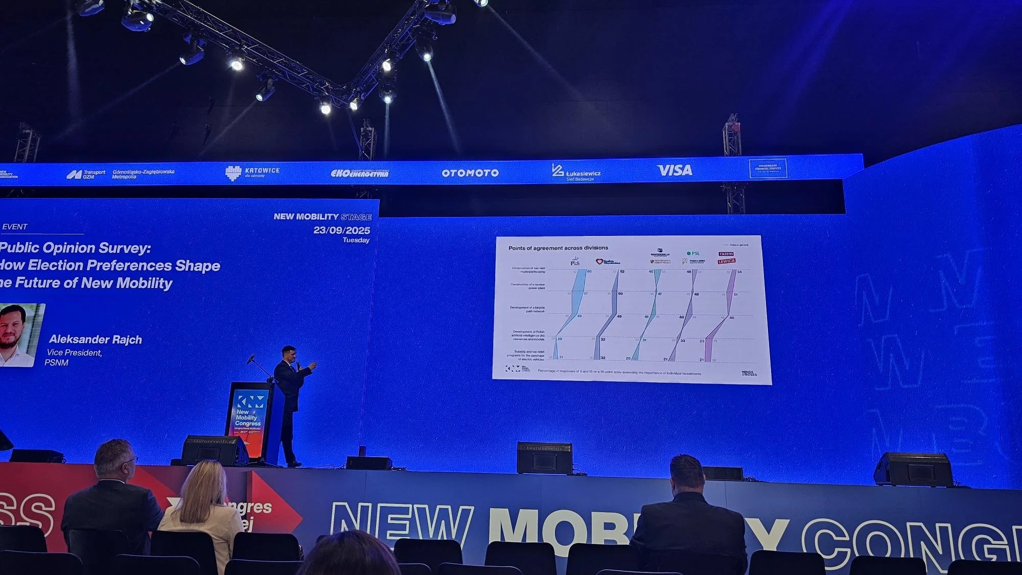 Wyniki badania Minds & Roses zaprezentował na scenie głównej Kongresu Aleksander Rajch - wiceprezes Polskiego Stowarzyszenia Nowej Mobilności. Dane skomentowali następnie w debacie politycy - Mateusz Morawiecki (PiS), Dariusz Wieczorek (Lewica) oraz Tadeusz Jarmuziewicz (PO).